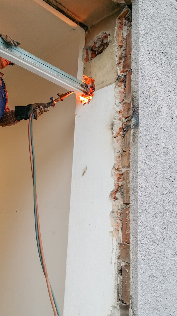 Demontaż witryn stalowych.